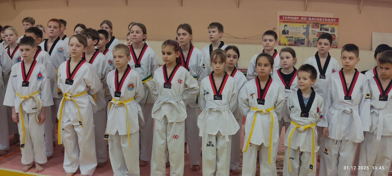31 декабря 2025 г. в игровом зале павильона СК АО «ДИНУР» прошла традиционная предновогодняя тренировка воспитанников общественной организации «Школа тхэквондо г. Первоуральска».